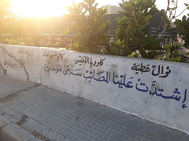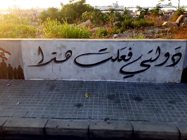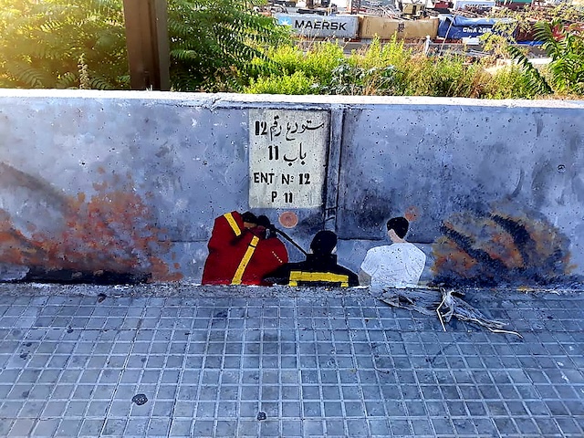 Figure 7 : photo prise par Nabil Ismail montrant la réécriture du message sur le mur du port