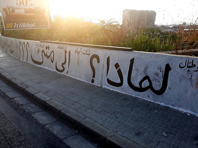 Ce qui semble différent, dans ce stade, par rapport aux deux premiers, c’est que les citoyens libanais communiquent directement avec l’État. Au premier stade, on note l’emploi de la 3e personne (« mon gouvernement ») ; au deuxième stade, une tournure plus impersonnelle suggère l’État sans le nommer, à travers « la gravité des calamités » et « les mains de la traîtrise ». En somme, les deux premiers stades décrivent la situation. Cependant, au troisième stade, la succession des questions (« pourquoi », « pour combien de temps », « qui » et « comment »), ainsi que la multiplication des points d’interrogation dans « Pour combien de temps ? ? ? », verbalisent un besoin urgent d’obtenir des réponses. D’ailleurs, cette multiplication des points d’interrogation sous-entend le désespoir des citoyens libanais qui, tout au long de l’histoire de leur pays et des événements tragiques vécus, n’ont jamais connu la vérité. Il y a toujours eu un effort pour cacher la réalité des événements, comme le montre, par exemple, l’absence d’un manuel d’histoire unique dans le système éducatif libanais depuis la guerre civile (1975–1990). Après cela, et jusqu’à la date de rédaction de cet article, il n’existe toujours pas de manuel d’histoire unique dans les écoles libanaises.