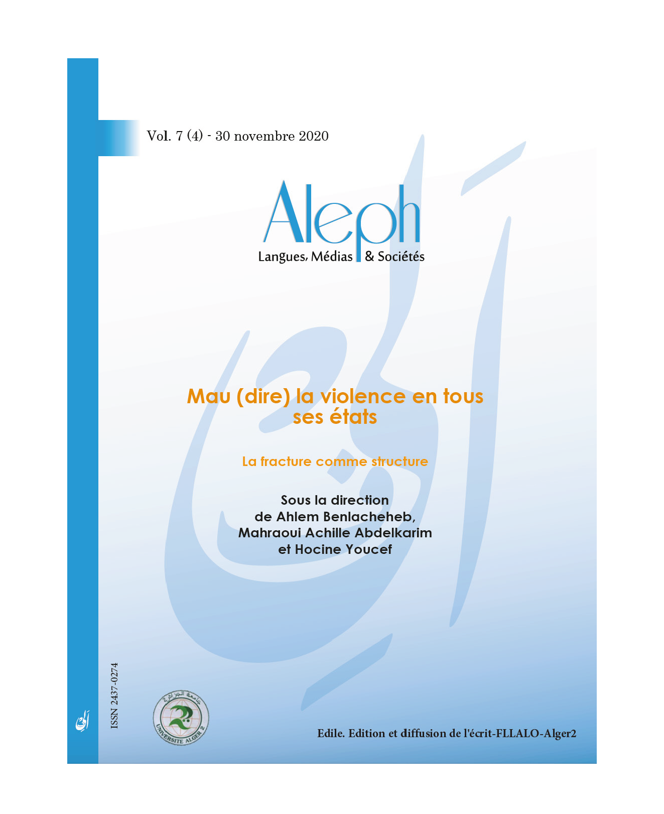 7 (4) | 2020 : Mau (dire) la violence en tous ses états > Recherches >L’acte du divorce en Algérie : scénographie d’une andro-autorité1 Couverture du numéro Fichier original 7_4_aleph_couv.png (image/png – 432k)