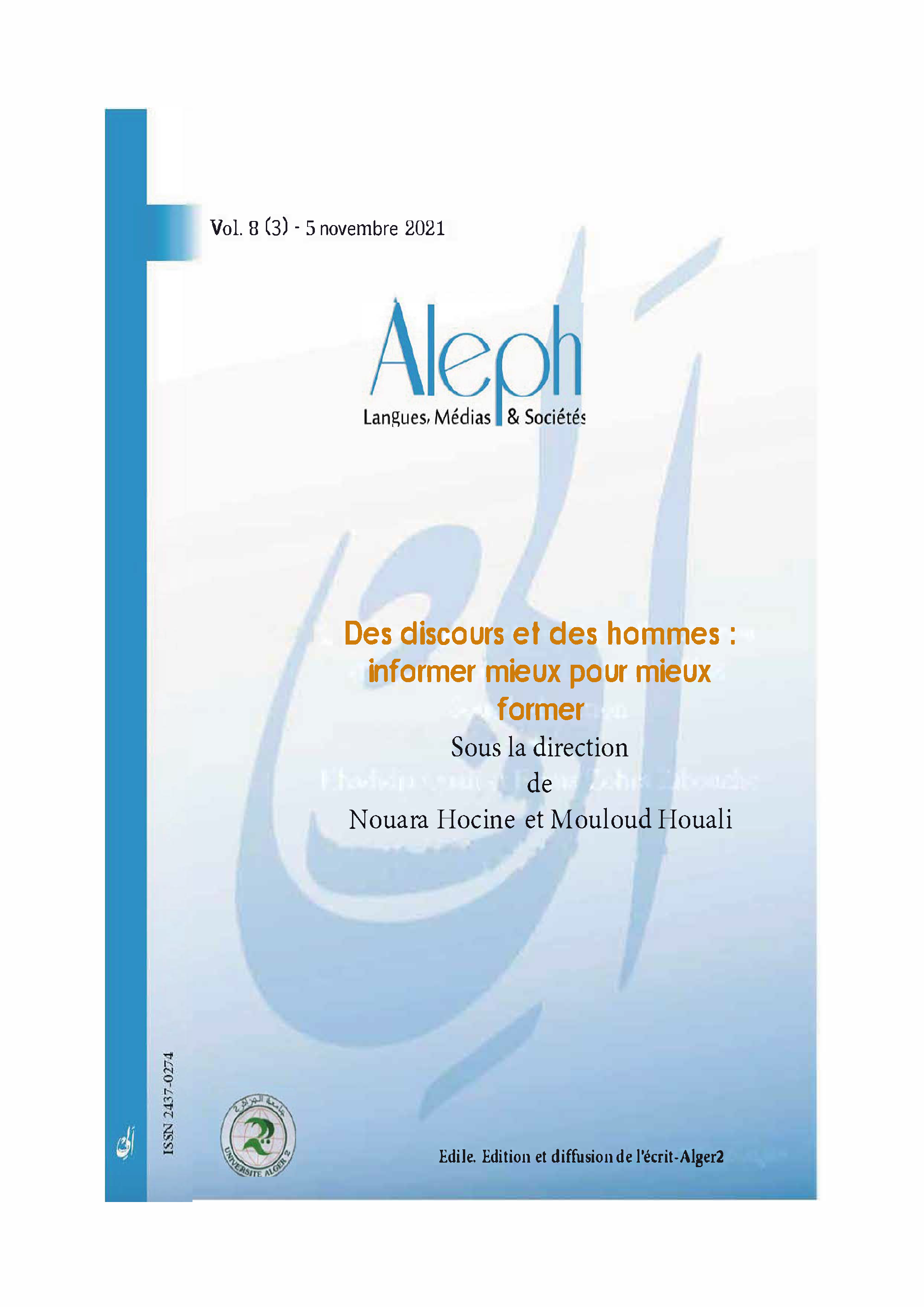 8 (3) | 2021 : Des discours et des hommes : informer mieux pour mieux former Des discours et des hommes : informer mieux pour mieux former Fichier original couv_aleph_8_3_19_.png (image/png – 664k)
