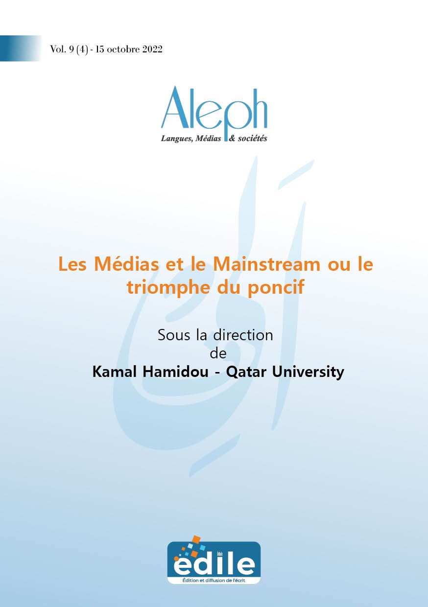 Vol 9 (4) | 2022 : Les médias et le mainstream ou le triomphe du poncif Les médias et le mainstream ou le triomphe du poncif Fichier original couverture_aleph_gr.jpg (image/jpeg – 233k)